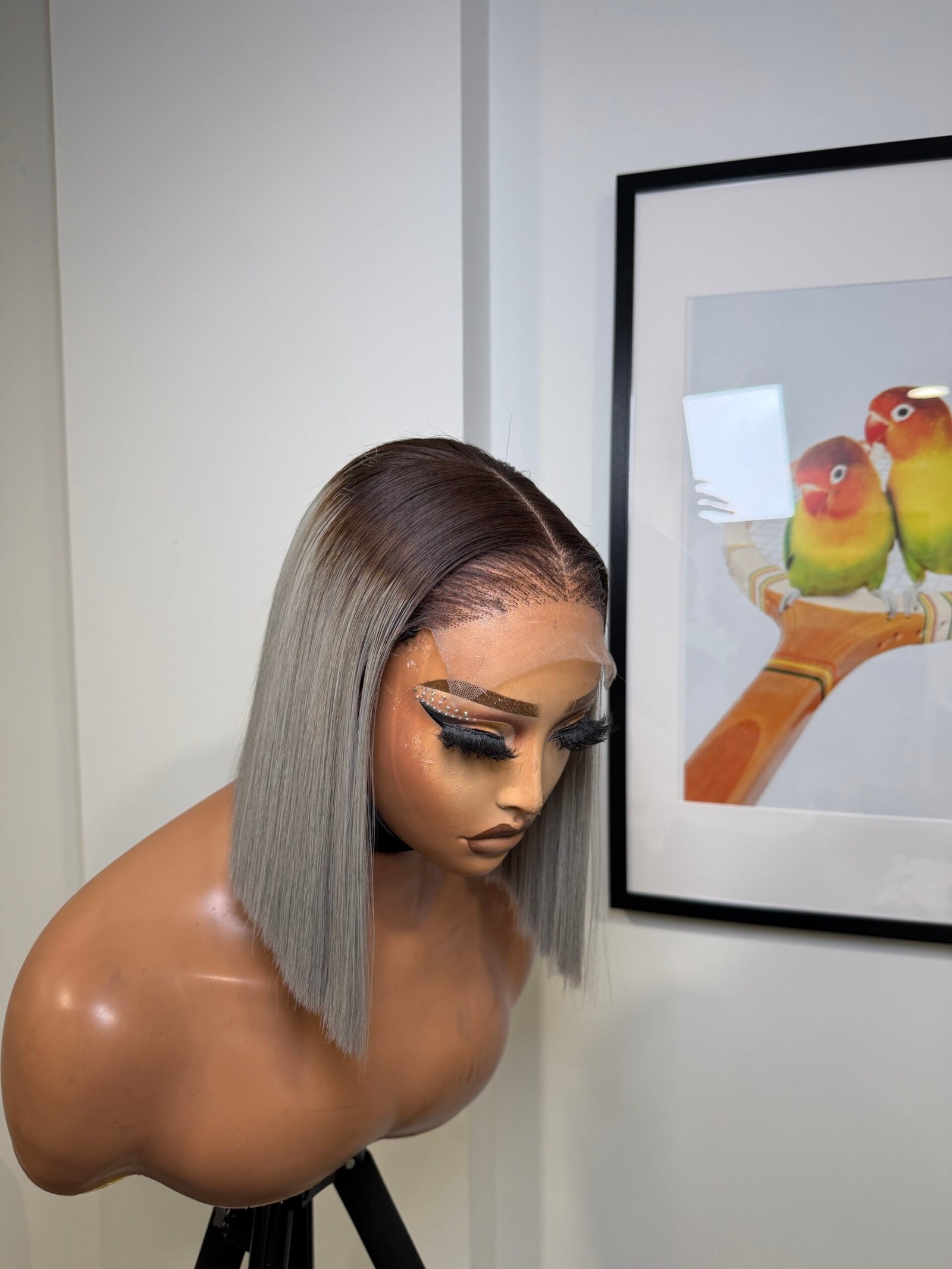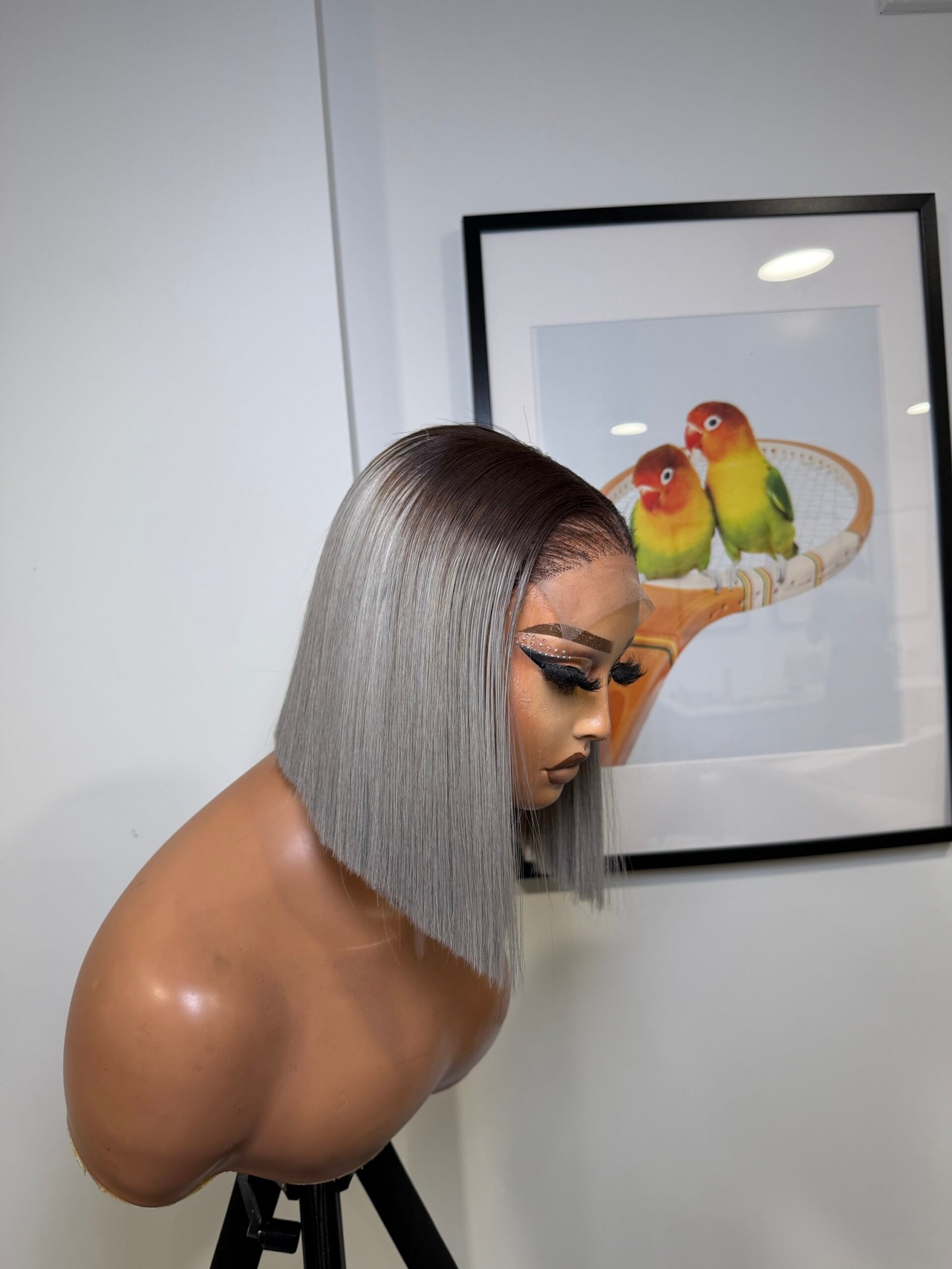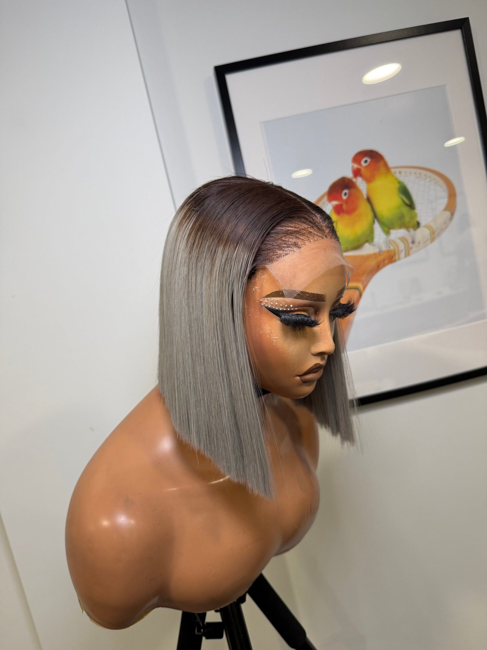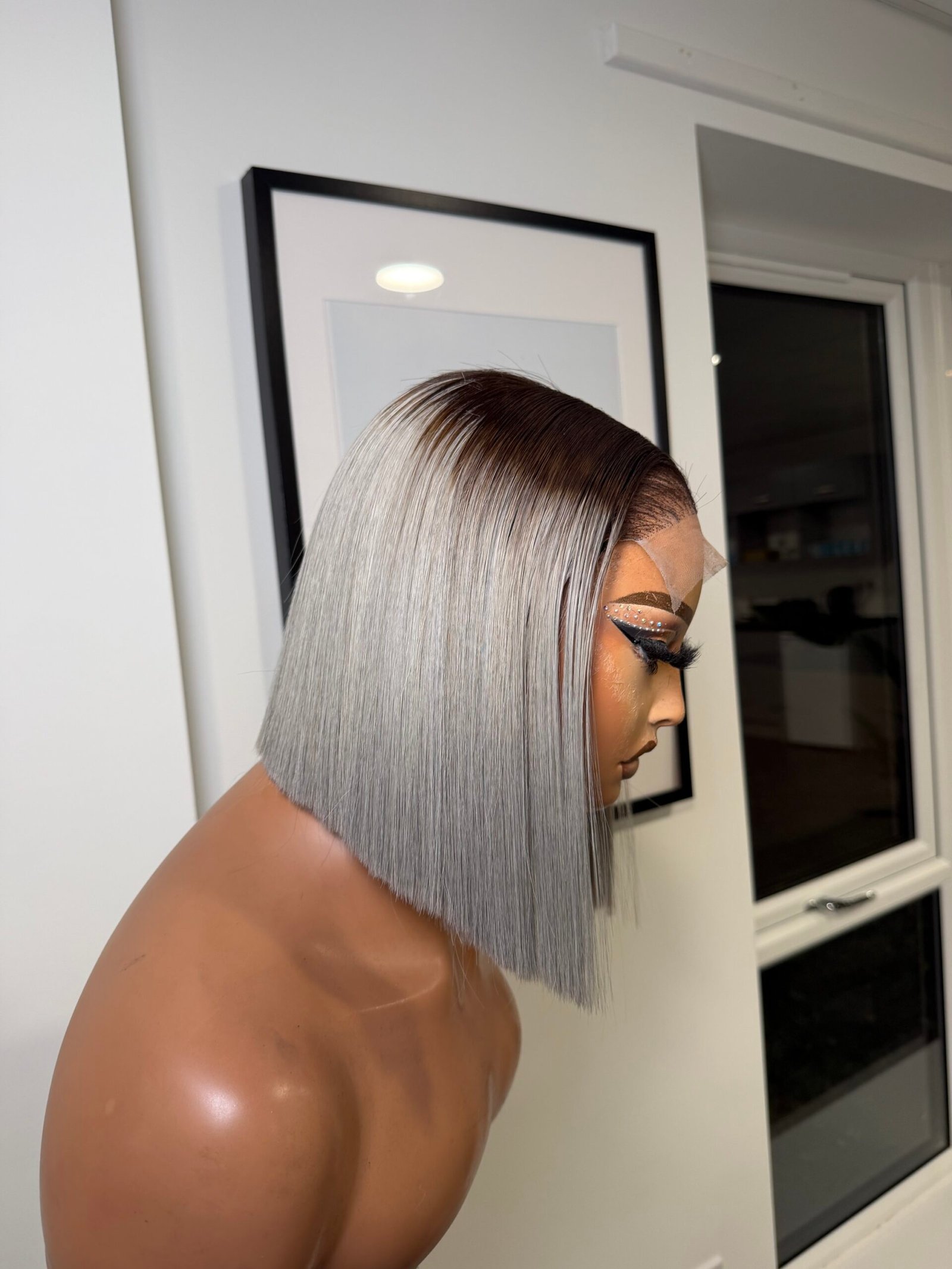 This is a premium raw bone straight wig, crafted for a sleek and classy finish. It is 10 inches long and made with 200grams of full, thick hair, giving a rich and natural look. The wig comes with a 5×5 lace that blends seamlessly into the scalp, paired with stylish grey color and natural dark roots for a flawless, realistic melt.