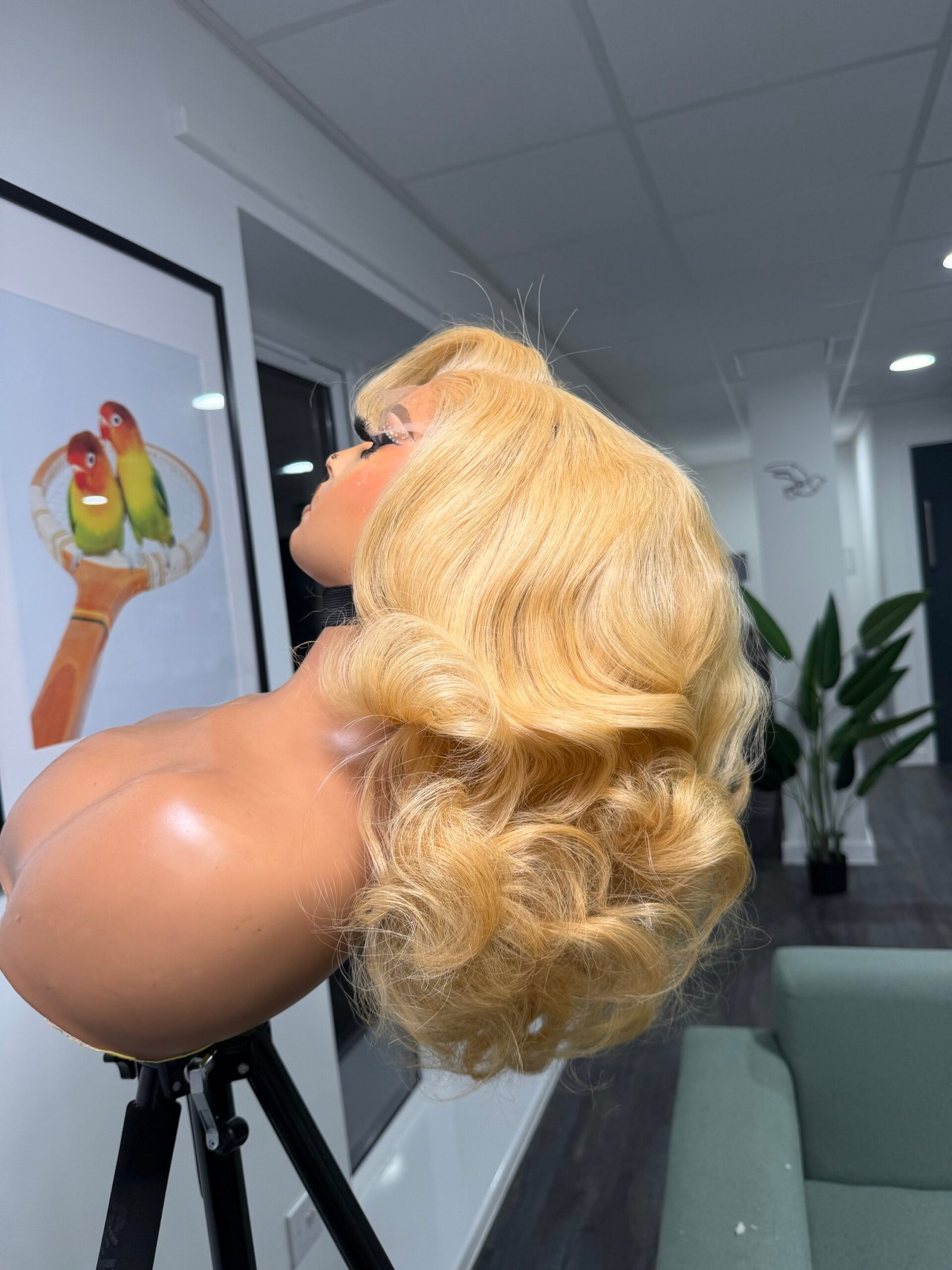 Step into luxury with this premium raw bouncy hair in a stunning blonde shade. This unit is 14 inches with 300 grams of full, rich volume and comes with a 5×5 HD lace that blends effortlessly into the scalp for a clean, natural finish.